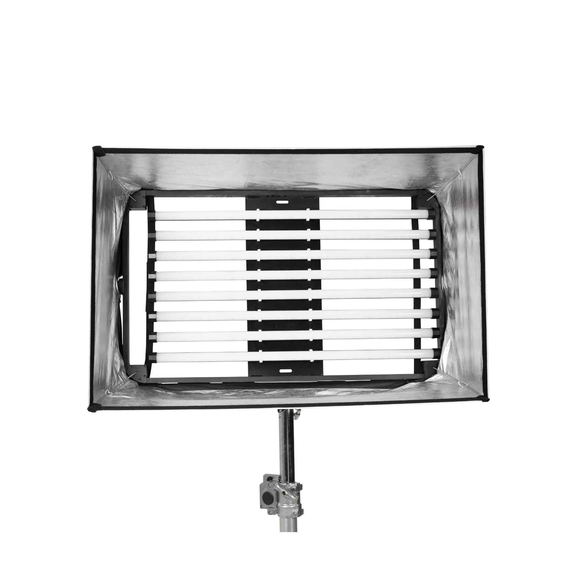 TURN TUBES INTO A SOFTBOX With T12 clips for eight 4-foot LED tube lights, this transforms them into a large, rectangular light source with 2 removable layers of diffusion that you can position and lock into place
