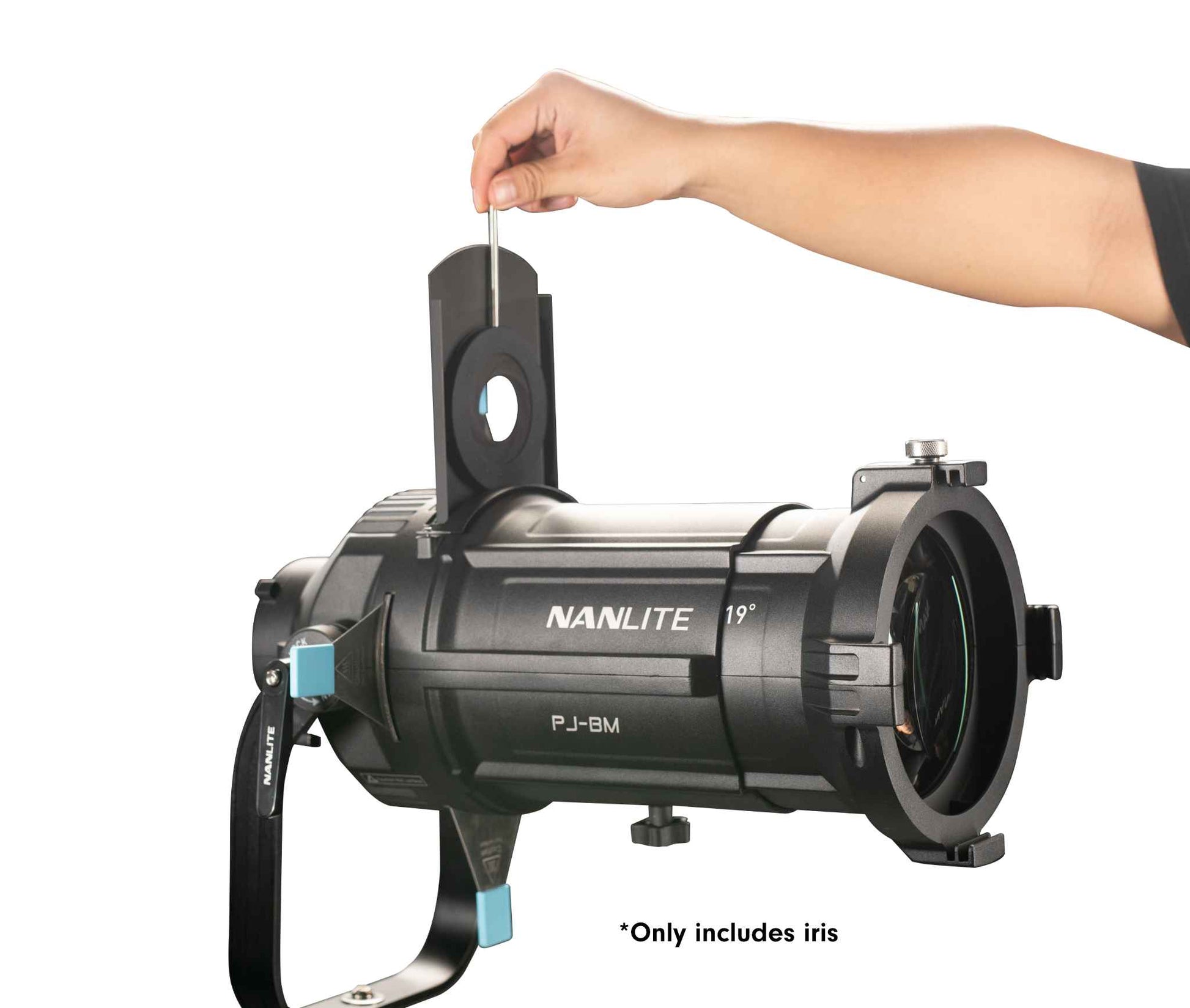 EVEN MORE CONTROL Created specifically for use in the Nanlite PJ-BM Projection Attachment, the Nanlite PJ-BM-AI Adjustable Iris enables full control over the light beam's size and shape