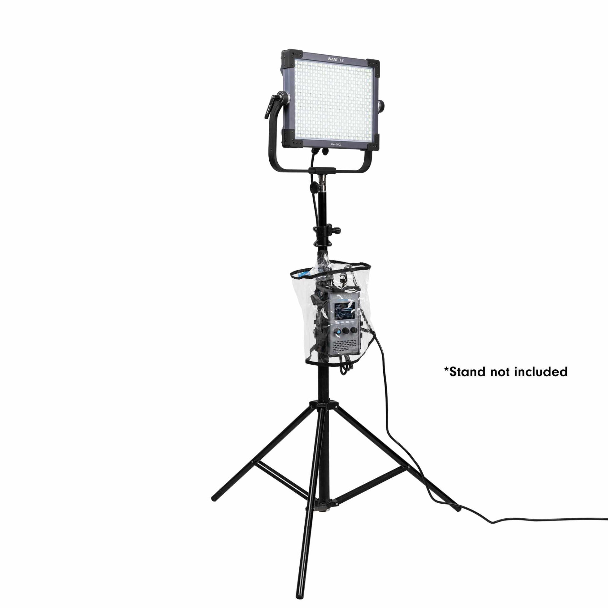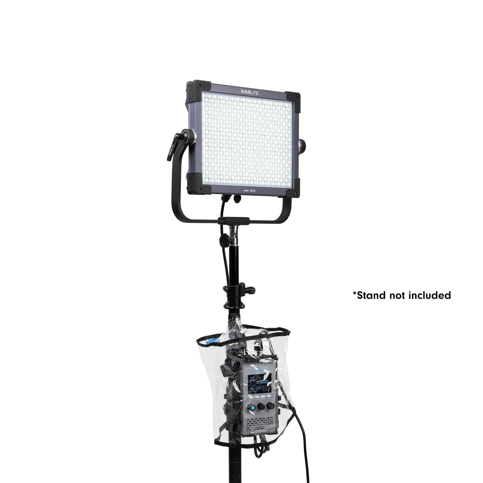 The Alien 300C panel is protected with an IP55 water-resistance, and a transparent rain cover is provided to shield both the Control Unit and V-Mount batteries (batteries sold separately), so you can travel far from home and shoot in the elements.