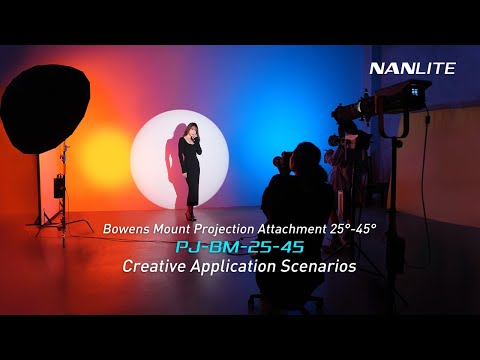 The Nanlite Bowens Mount Projection Attachment 25°–45° (PJ-BM-25-45) is a powerful light modifier that features a zoom lens that lets you adjust the beam angle of the attached light from 25° to 45° and all points in between. You can rotate the lens barrel 360° to further manipulate the light you’re projecting, or quickly adjust the orientation of a gobo. 4 retractable cutter shutters let you shape and cut, and it can be focused or defocused.