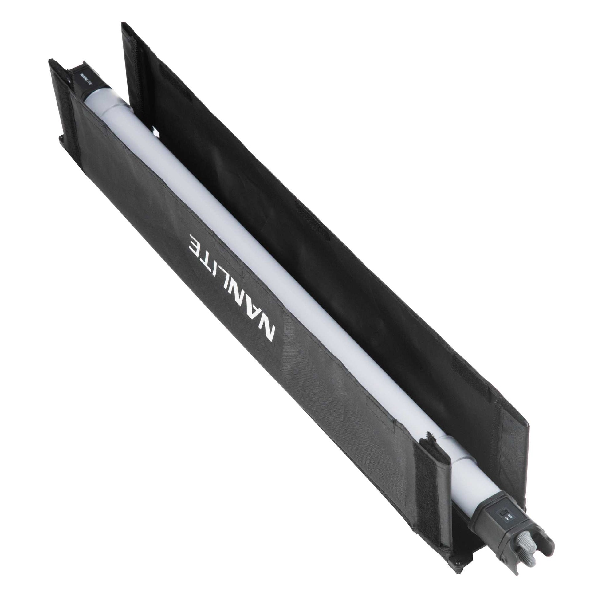 The Nanlite Fabric Barndoors and Grid for PavoTube II 15C LED Tubes mounts with T12 diameter clips and minimizes light spill while adding directionality. Features openings on the rear that do not allow light to escape, but do let you insert mounts to rig the light on a stand, and see the display of the light. A carrying bag is included for storage and travel.