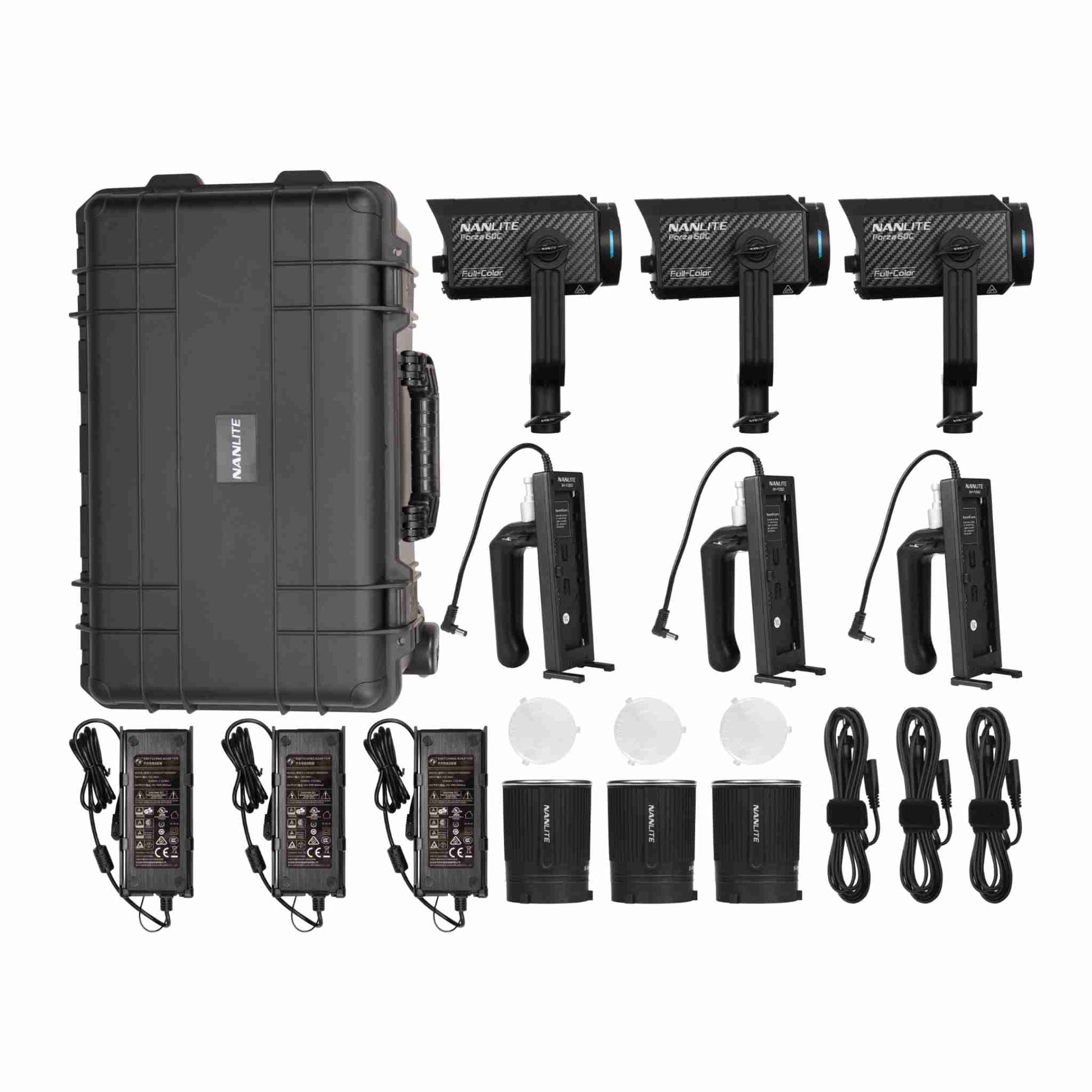 The Nanlite Forza 60C RGBLAC LED Spotlight 3-Light Kit is a set of lightweight and ultracompact fixtures that feature a 6-color mixing technology that incorporates lime, amber, and cyan LED beads into the light source making it possible to produce highly accurate daylight-balanced 5600K light, an ultra-wide CCT range of 1800K-20000K, and notably vibrant and rich colors.
