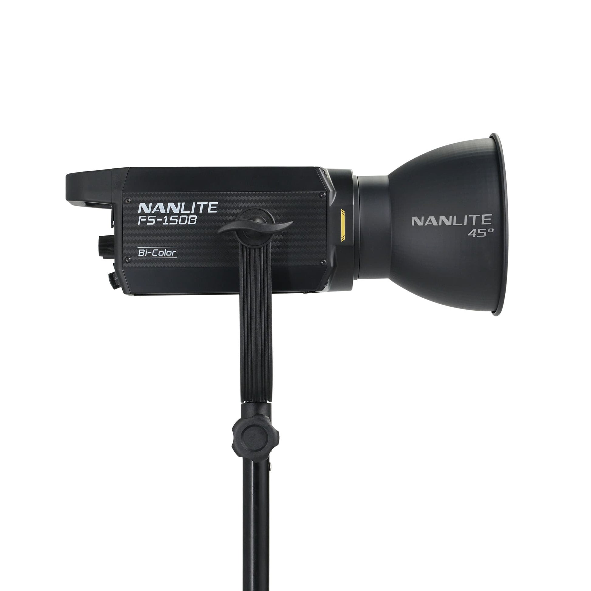 The Nanlite FS-150B is an AC powered, bi-color LED light for livestreaming, photo and video production that's easy to use and provides professional-looking results—all in a compact and lightweight design with premium-quality construction that's built to last. When you need brightness to light up a dark space, FS-150B can deliver up to 26300 Lux (2443 foot candles) of light at 1 meter with the included reflector.