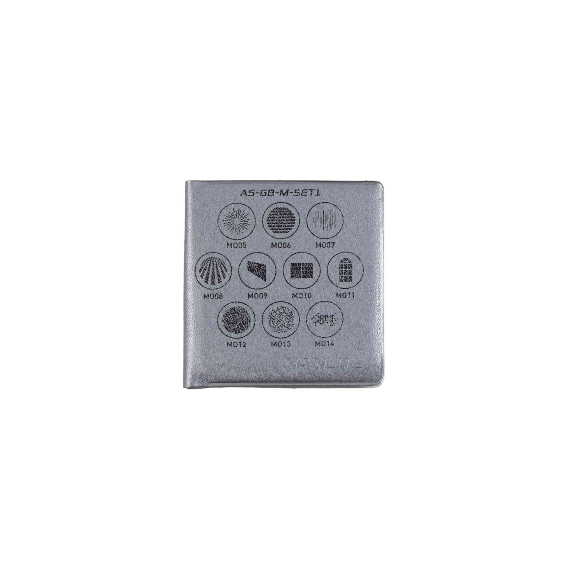 The Nanlite M-Size Gobo Set 1 is a collection of 10 gobo discs that are compatible with M-Size gobo holders, such as the ones the come with PJ-FMM Projection Attachments and the Nanlite Bowens Mount Projection Attachment 25°-45°. This set includes 3 separate window types: arched, double, and angled, and useful patterns like a linear array and other breakups. Use them to create compelling backgrounds, convincing shadows and reflections, and countless other effects.