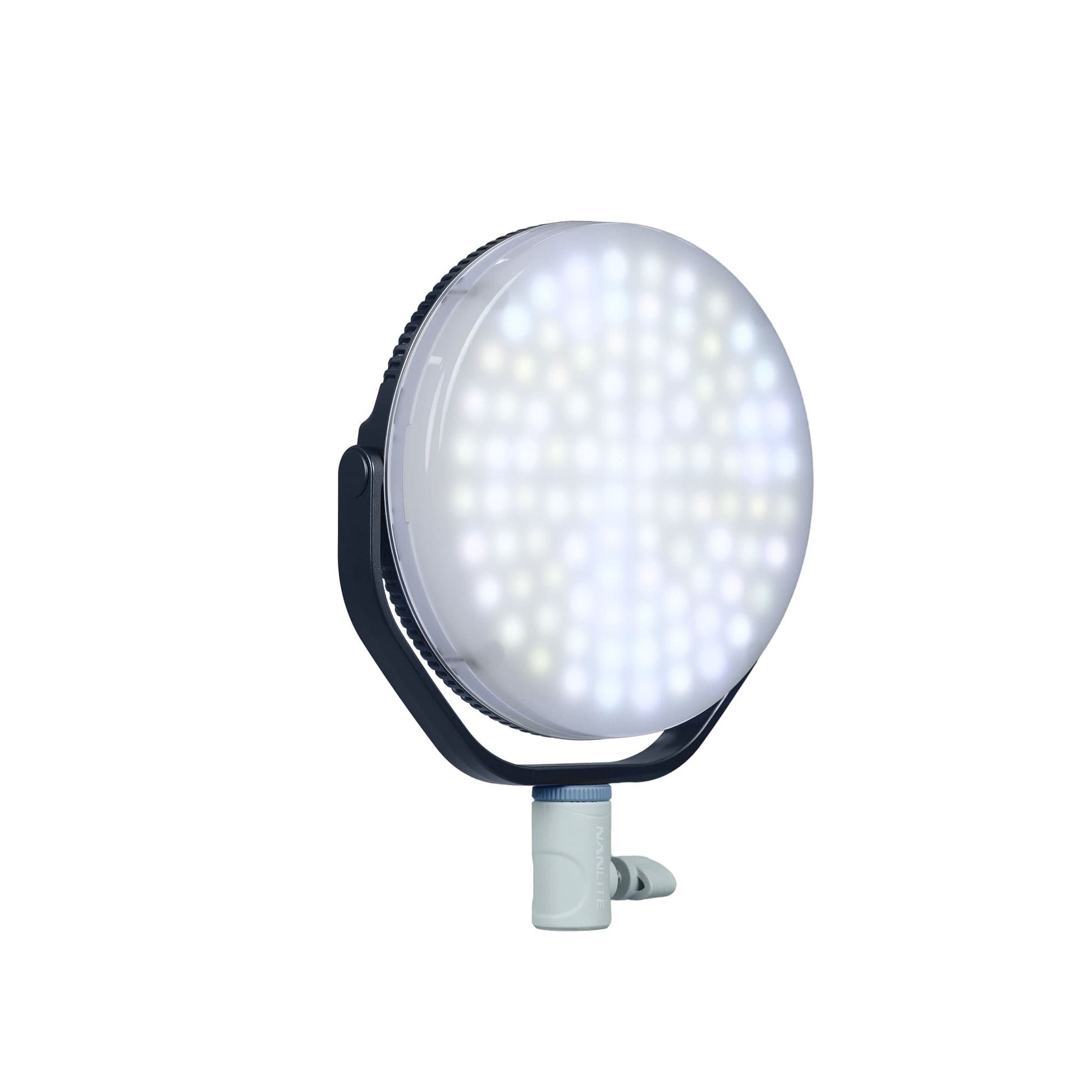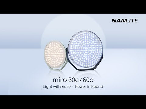 The Nanlite miro 30C is a full-color LED panel light with a compact, round body that's perfect for lighting podcasts and livestreams, and as a battery-powered standalone light for shooting videos, photos, and all types of content creation. Whether you're using the built-in controls or Bluetooth, it's easy to dial-in just the right look and brightness for warm and cool white light, and 36,000 different colors. This model is available in a stylish Mint Blue or Midnight Blue body.