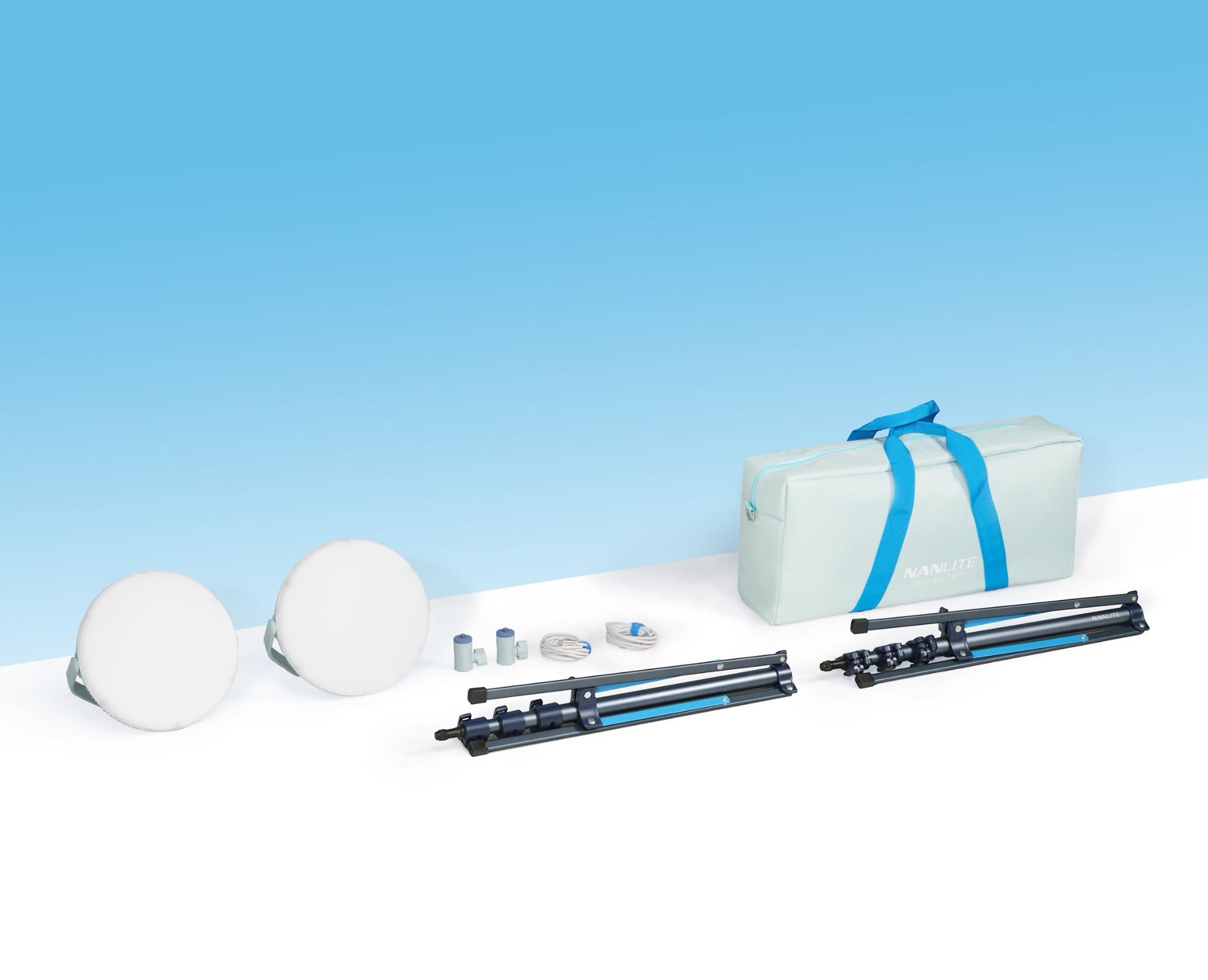 The Nanlite miro 60C is a full-color LED panel light with a round body that's perfect for lighting podcasts and livestreams, and as a battery-powered standalone light for shooting videos, photos, and all types of content creation. Whether you're using the built-in controls or Bluetooth, it's easy to dial-in just the right look and brightness for warm and cool white light, and 36,000 different colors. This is a two-light kit with stylish Mint Blue bodies that includes two light stands.