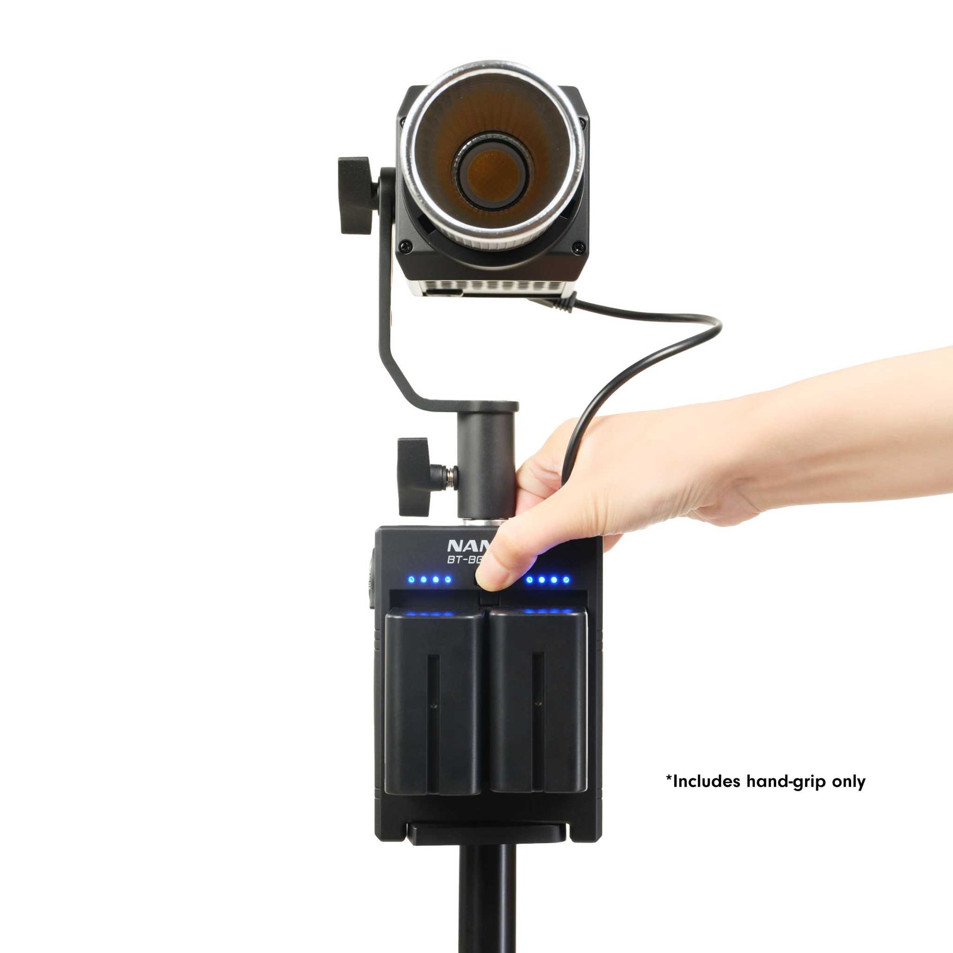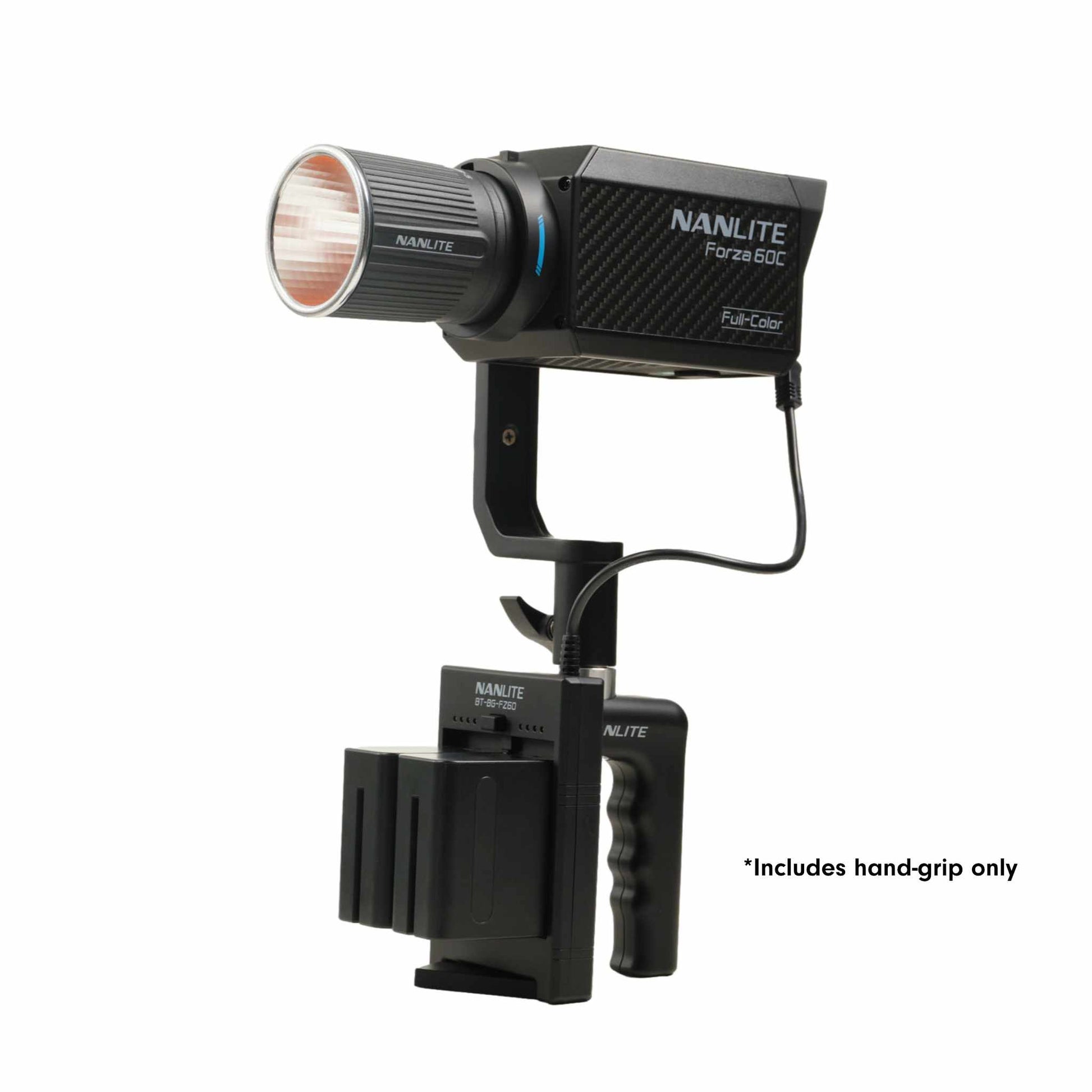 The Forza 60 NPF Battery Grip allows you to use a Forza 60B II, 60C, 60CR, or an FC-60B on NP-F battery power and it provides an ergonomic handle, a standard 5/8" light-stand mount on the bottom for directly mounting on a stand, and a retractable foot so you can rest it on surfaces hands-free.