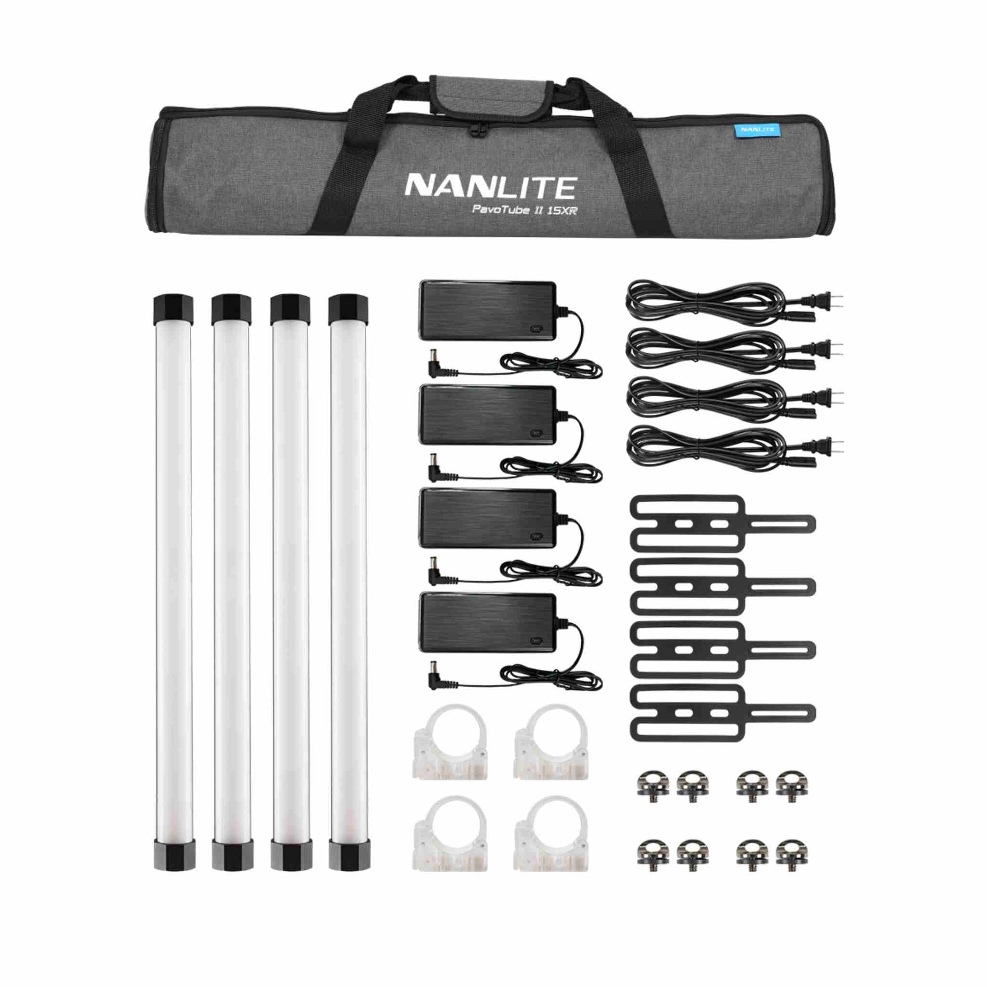 The PavoTube XR-Series have been refined based on feedback from creators around the globe with pixel-based special effects, brighter output, uniform diffusion, robust metal housings, DMX/RDM, 2.4G, Bluetooth control with the free NANLINK mobile app for iOS and Android, and CRMX. This is a 4-light kit that includes accessories and a padded carrying bag.