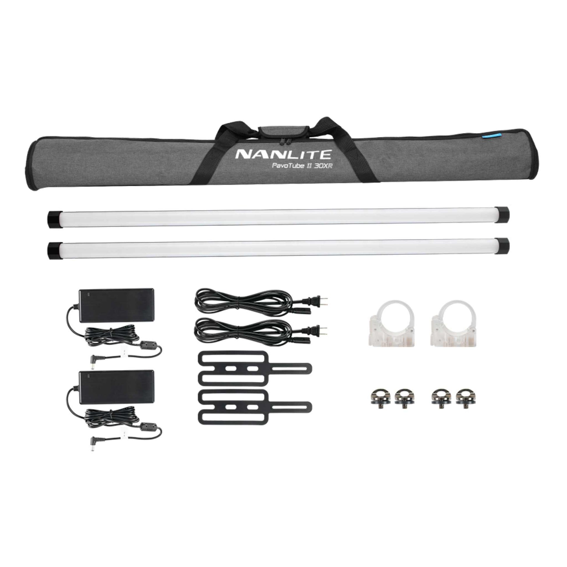 The PavoTube XR-Series have been refined based on feedback from creators around the globe with pixel-based special effects, brighter output, uniform diffusion, robust metal housings, DMX/RDM, 2.4G, Bluetooth control with the free NANLINK mobile app for iOS and Android, and CRMX. This is a 2-light kit that includes accessories and a padded carrying bag.