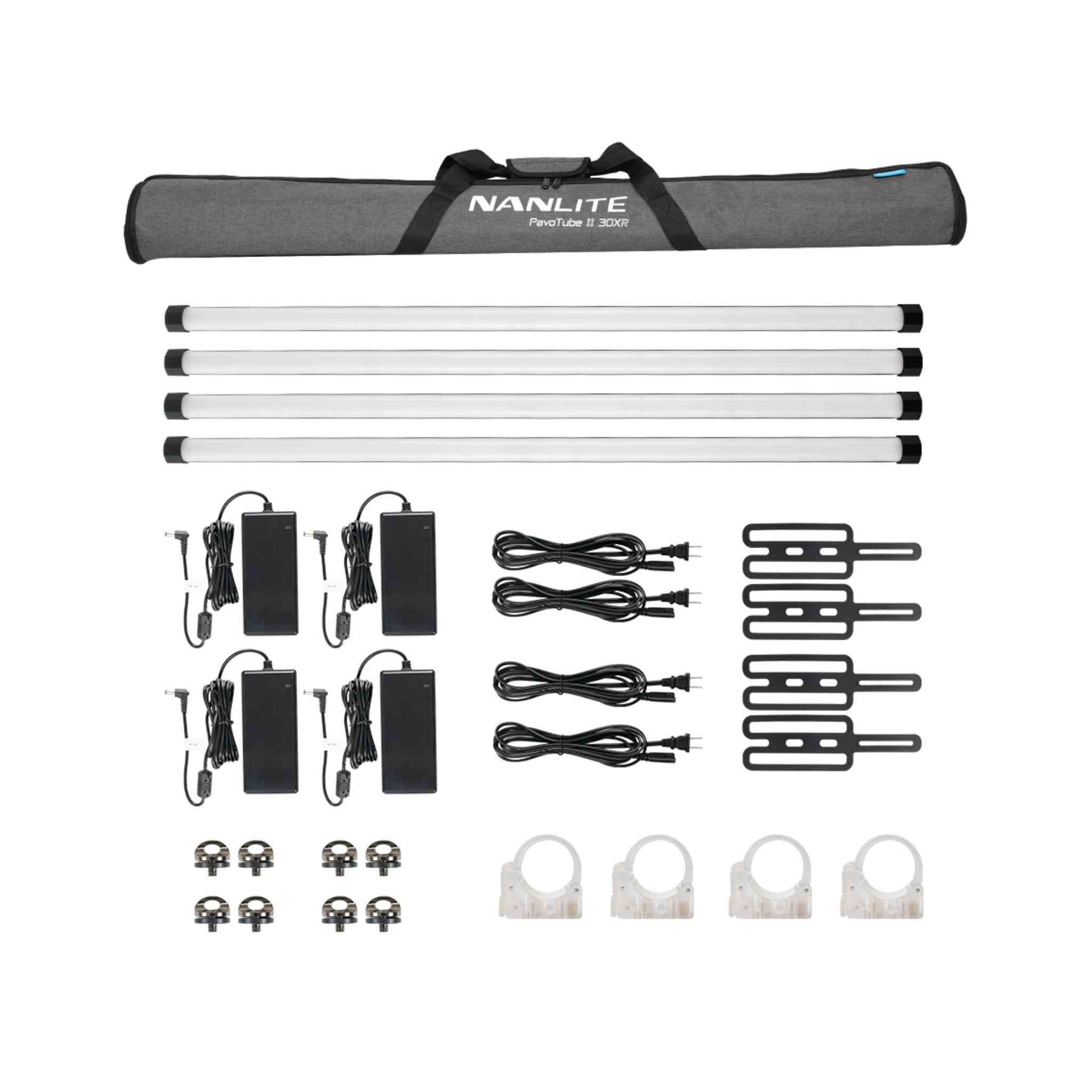 The PavoTube XR-Series have been refined based on feedback from creators around the globe with pixel-based special effects, brighter output, uniform diffusion, robust metal housings, DMX/RDM, 2.4G, Bluetooth control with the free NANLINK mobile app for iOS and Android, and CRMX. This is a 4-light kit that includes accessories and a padded carrying bag.
