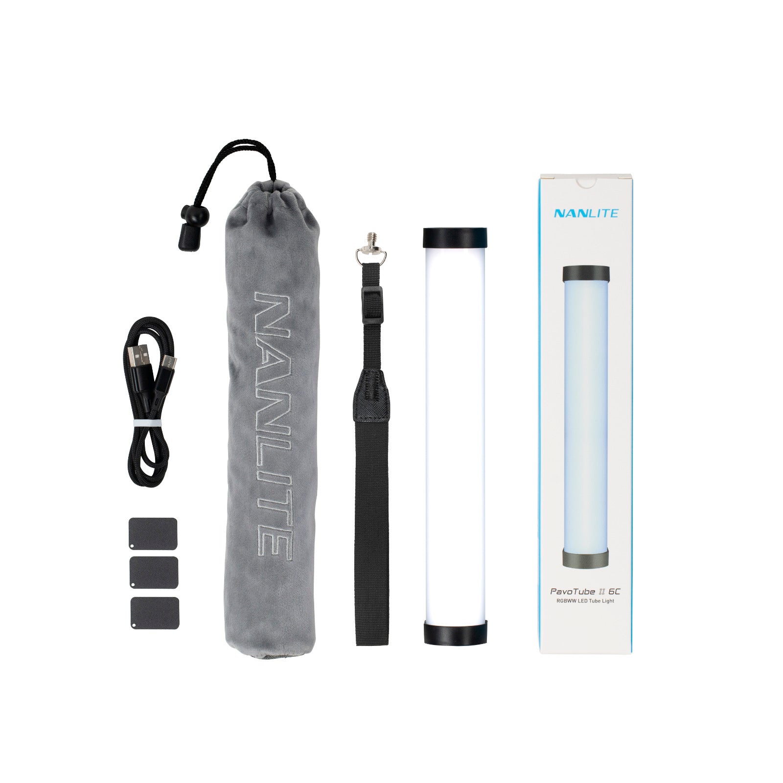The Nanlite PavoTube II 6C RGBWW LED Tube is an amazingly portable and versatile lighting fixture that features 0 to 100% dimming with maximum illumination of 520 lumens (169 Lux @ 1m) at 5600K, as well as rich RGB colors and pre-programmed special lighting effects. You can control it with a phone or tablet through Bluetooth, 2.4G, or use the intuitive on-board buttons.