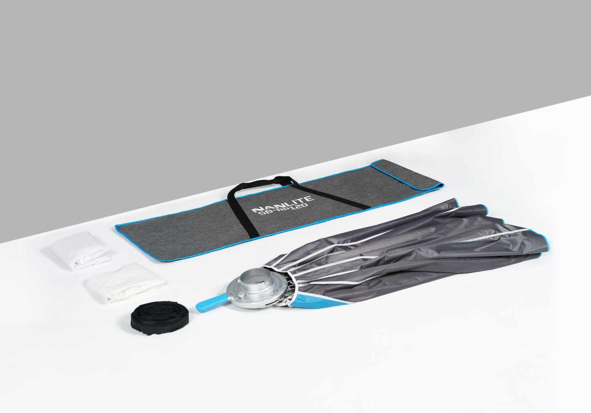 The Nanlite Rapid 120 is a high-quality softbox with a deep parabolic design that delivers excellent lighting performance and can be fully assembled and disassembled in seconds thanks to its rapid-latch speed ring. It has a Bowens Mount for ultimate compatibility and includes an egg-crate grid, two layers of diffusion, a carrying bag, a 2-year warranty that extends to 3 years with online registration, and it's stocked and supported in the USA by a dedicated and responsive team.